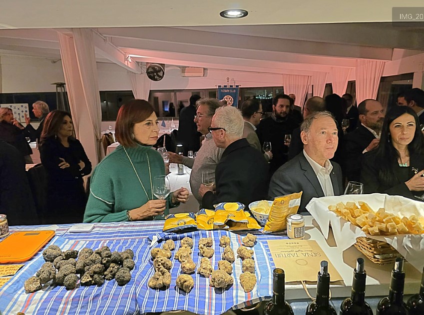 A firmare il menù della serata è stato lo chef Michele Nardi, che ha deliziato soci e ospiti con una serie di portate a base del pregiato fungo ipogeo. L’incontro è iniziato con un aperitivo di benvenuto, seguito dal tradizionale suono della campana che segna l’apertura ufficiale dei lavori rotariani.