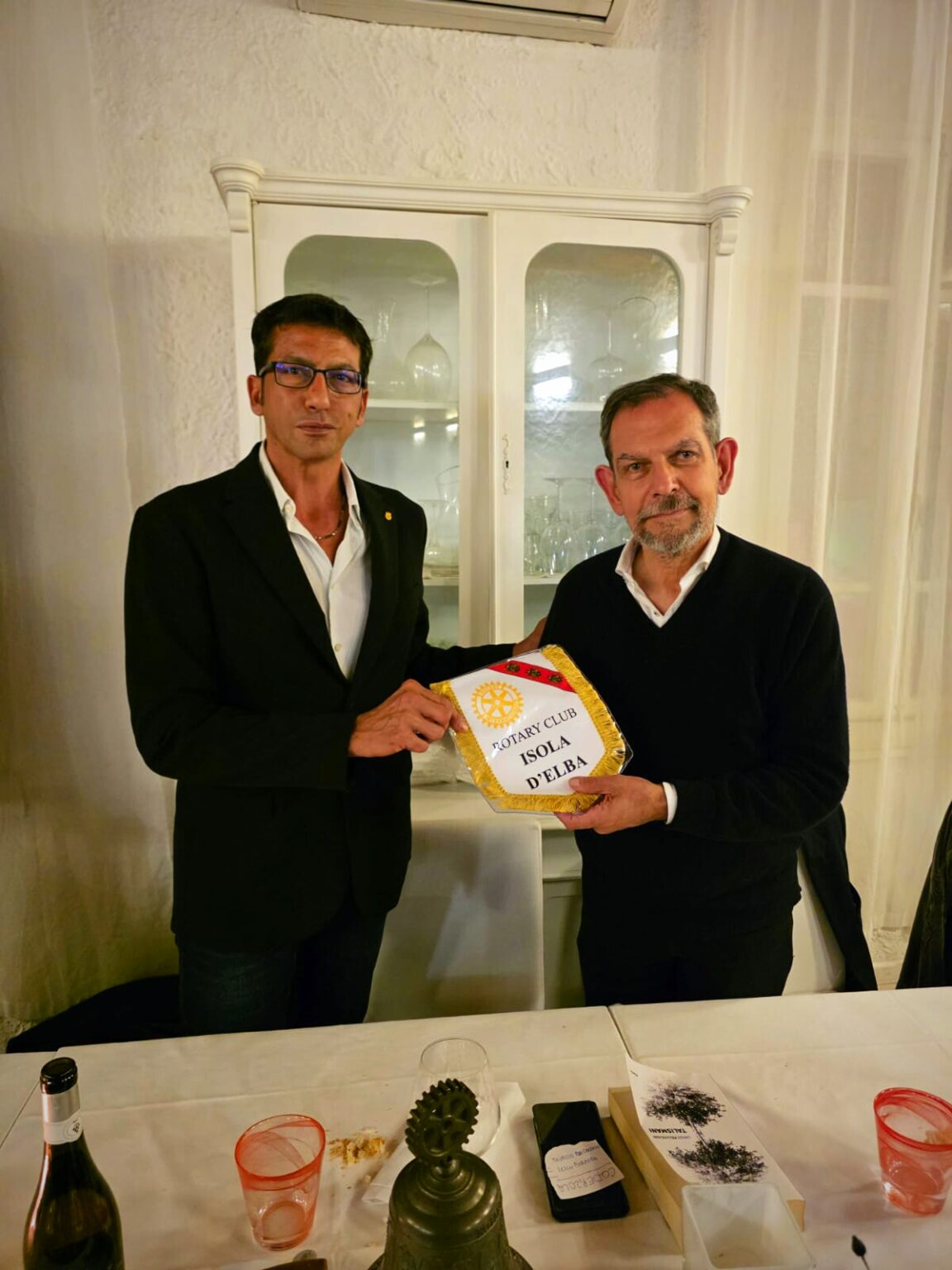 Durante la cena, l’atmosfera è stata di autentica partecipazione e amicizia. Un momento particolarmente emozionante è stato quello in cui il presidente Davide ha conferito a Igor Sibaldi il titolo di Socio Onorario del Rotary Club Isola d’Elba, a testimonianza del solido legame di stima e affetto che si è instaurato tra l’autore e il Club.